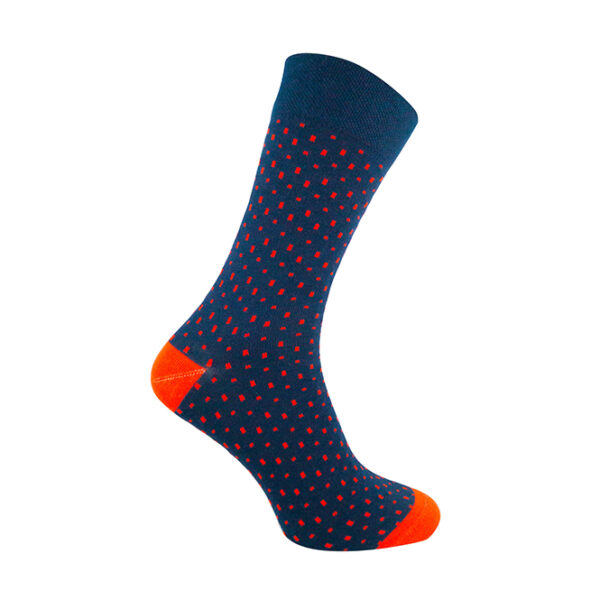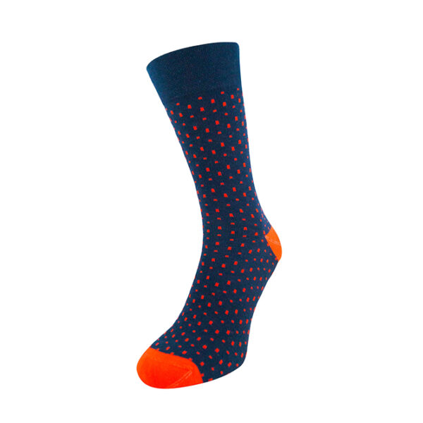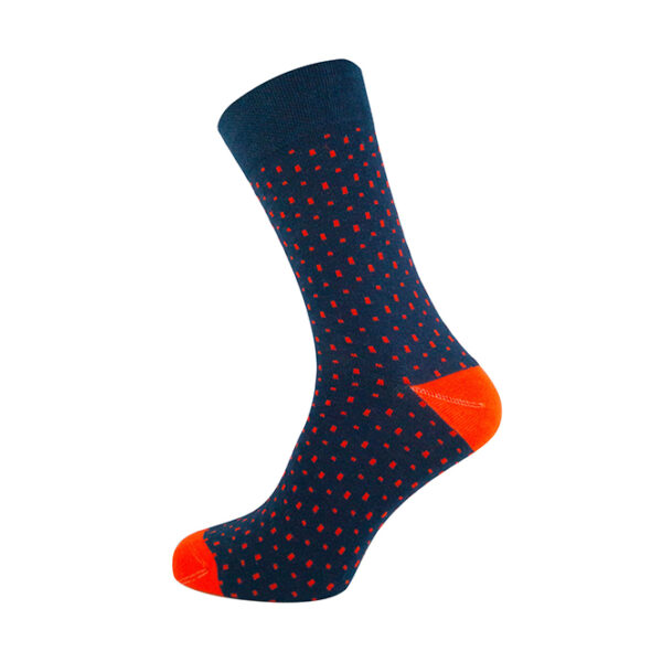 Heslo dne : Hravě ale decentně. Tak pro tento případ tady máme klasické pánské ponožky v tmavě modré barvě s hravým oranžovým dezénem v podobě různých obdélníků. Rozzáří všechny outfity a neměly by chybět ve vašem šatníku. Vysoce kvalitní provedení Česká výroba Materiál: 85 % bavlna, 12 % polyamid a 3 % elastan