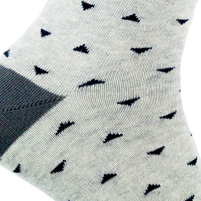 Klasika trochu jinak. Poprvé představujeme naše šedo melírované ponožky, které jsme doplnili motivem tmavomodré trojúhelníky. Decentní do práce, či k teniskám a džínám ? Necháme na vás. Jen ještě prozradíme, že ve skutečnosti jsou ještě lepší, než na fotce.